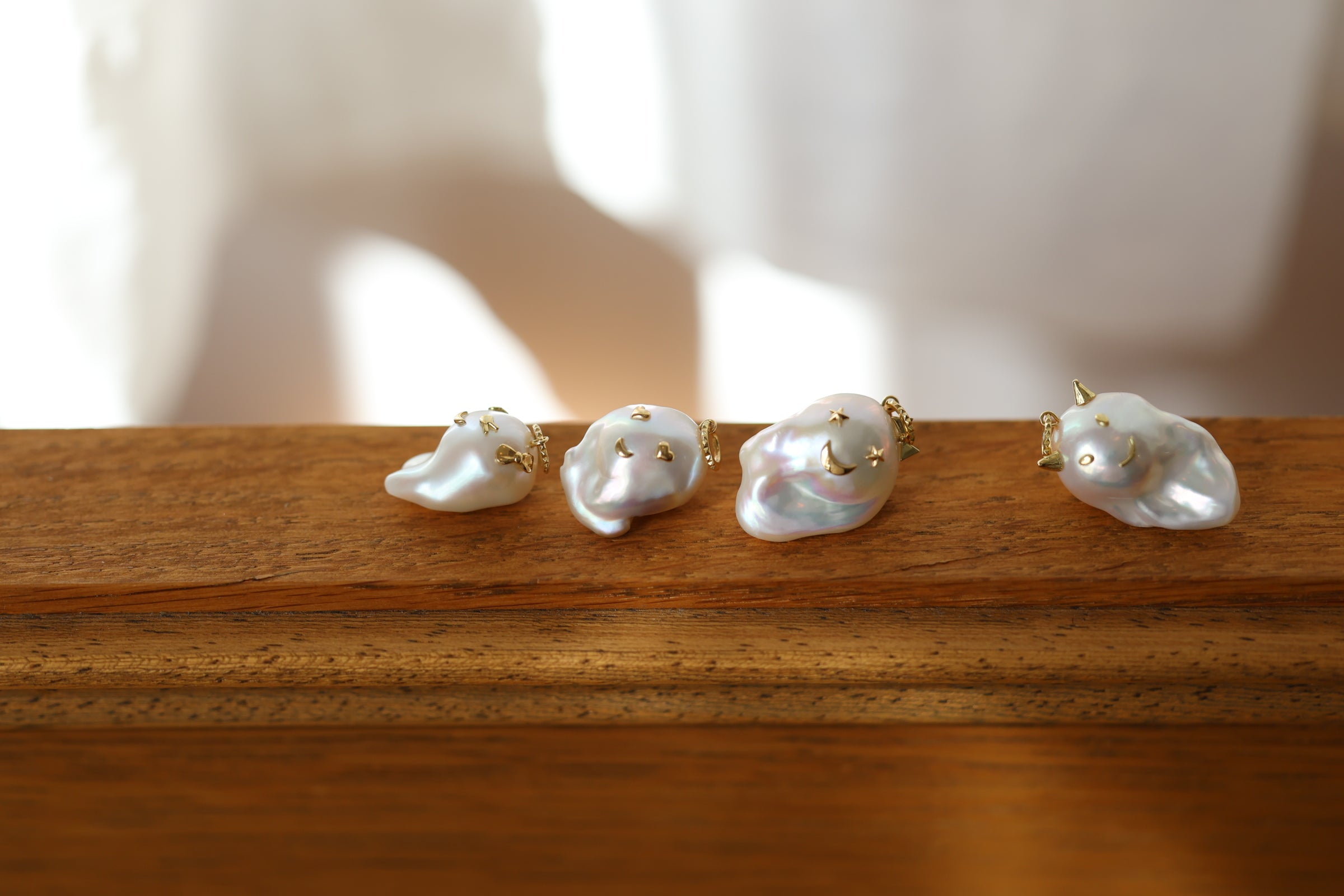 よく見るとカオがついているキュートなパールジュエリーは、着けていると「カワイイ!!」とカンバセーションピースに!遊び心のあるハッピージュエリーが人気。