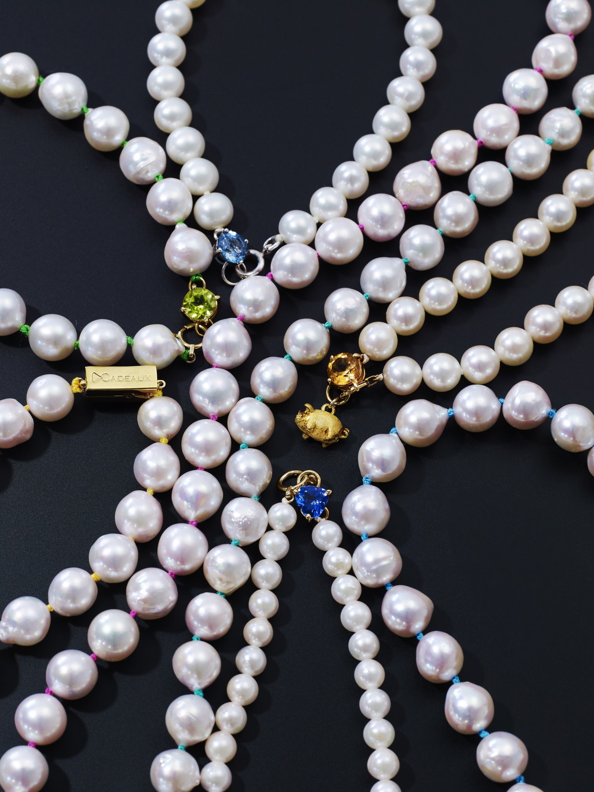ブランドシグネチャーのひとつ〝あこや真珠×カラーシルク糸〟ネックレスは2008年に誕生。